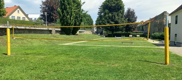 Im Grabengarten gibt es zwischen dem Spielplatz und einem Fußballfeld mit Kleintoren die Möglichkeit auf einem Rasenplatz Volleyball zu spielen.