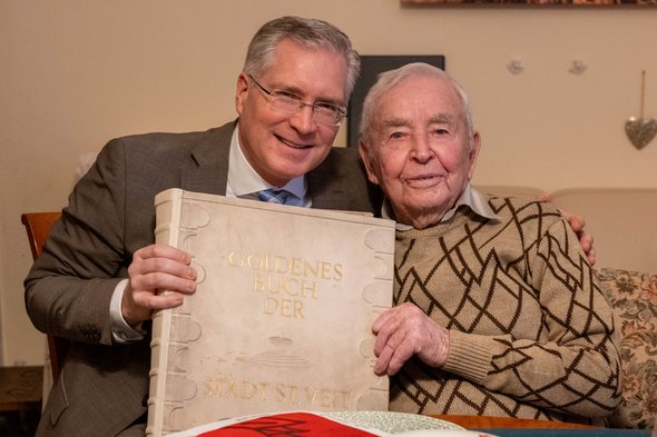 In der Herzogstadt fand er seine Heimat und blickt dankbar auf sechs Jahrzehnte glückliche Partnerschaft mit seiner mittlerweile verstorbenen Frau zurück. Heute sorgt seine Nichte Rosi liebevoll für sein Wohlbefinden. Trotz seines hohen Alters hat Josef Karner seinen Humor nicht verloren. Auf die Frage nach seinem Rezept für ein langes Leben nennt er eine Kombination aus Disziplin, Gelassenheit und einer Prise Ironie: Jeden Morgen stehen ein Apfel und eine Kiwi auf dem Speiseplan, sein Motto lautet schlicht „nicht ärgern“, und „ein Geheimnis ist wohl auch, dass ich schlecht höre“, schmunzelt der Jubilar. Bürgermeister Martin Kulmer zeigte sich tief beeindruckt von der Vitalität des 104-Jährigen: „Josef Karner ist ein Vorbild an Zufriedenheit und Lebensmut. Es ist eine Ehre, einen so geschätzten Mitbürger in unserer Stadt zu haben. Wir wünschen ihm weiterhin viel Gesundheit!“