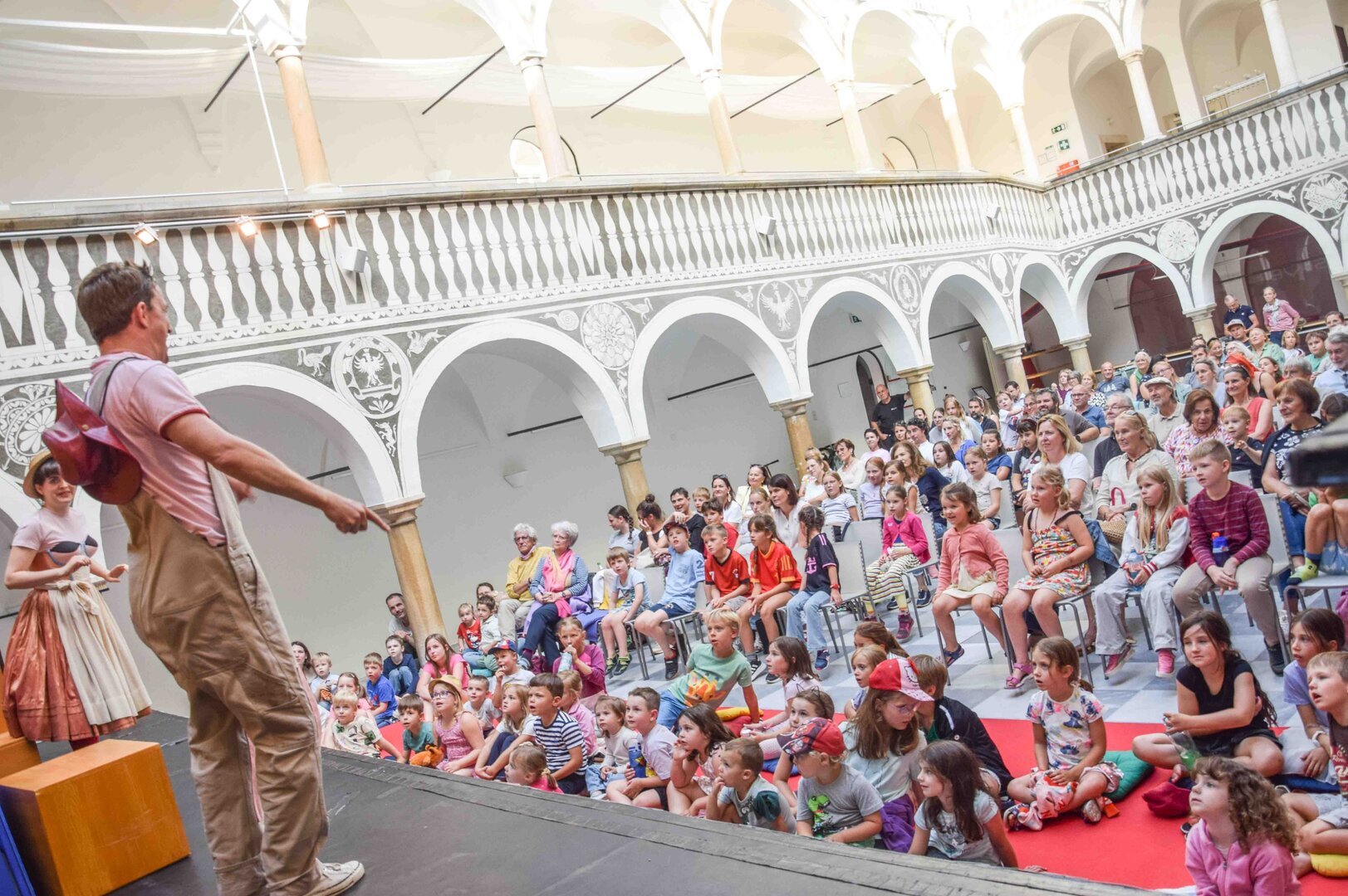 Ein besonderer Tag im Rathaushof von St. Veit: Zahlreiche kulturinteressierte Besucherinnen und Besucher, darunter viele Familien, kamen, um gemeinsam mit dem Theaterwagen Porcia einen unterhaltsamen Nachmittag und Abend zu erleben.