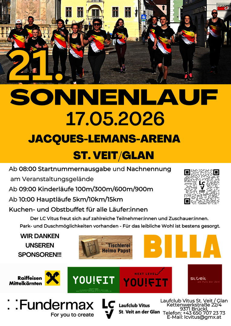 Ohne den Sonnenlauf wäre es wohl nur ein halber Start in die jährliche Laufsaison – zum 21. Mal findet dieser statt. Veranstaltungsort ist bereits zum zweiten Mal nun am Gelände der Jacques Lemans Arena. Der Vorstand des LC Vitus unter der Leitung von Obfrau Silvia Kogler ist bereits seit Monaten im Einsatz, um für den Sonnenlauf optimale Bedingungen zu schaffen.